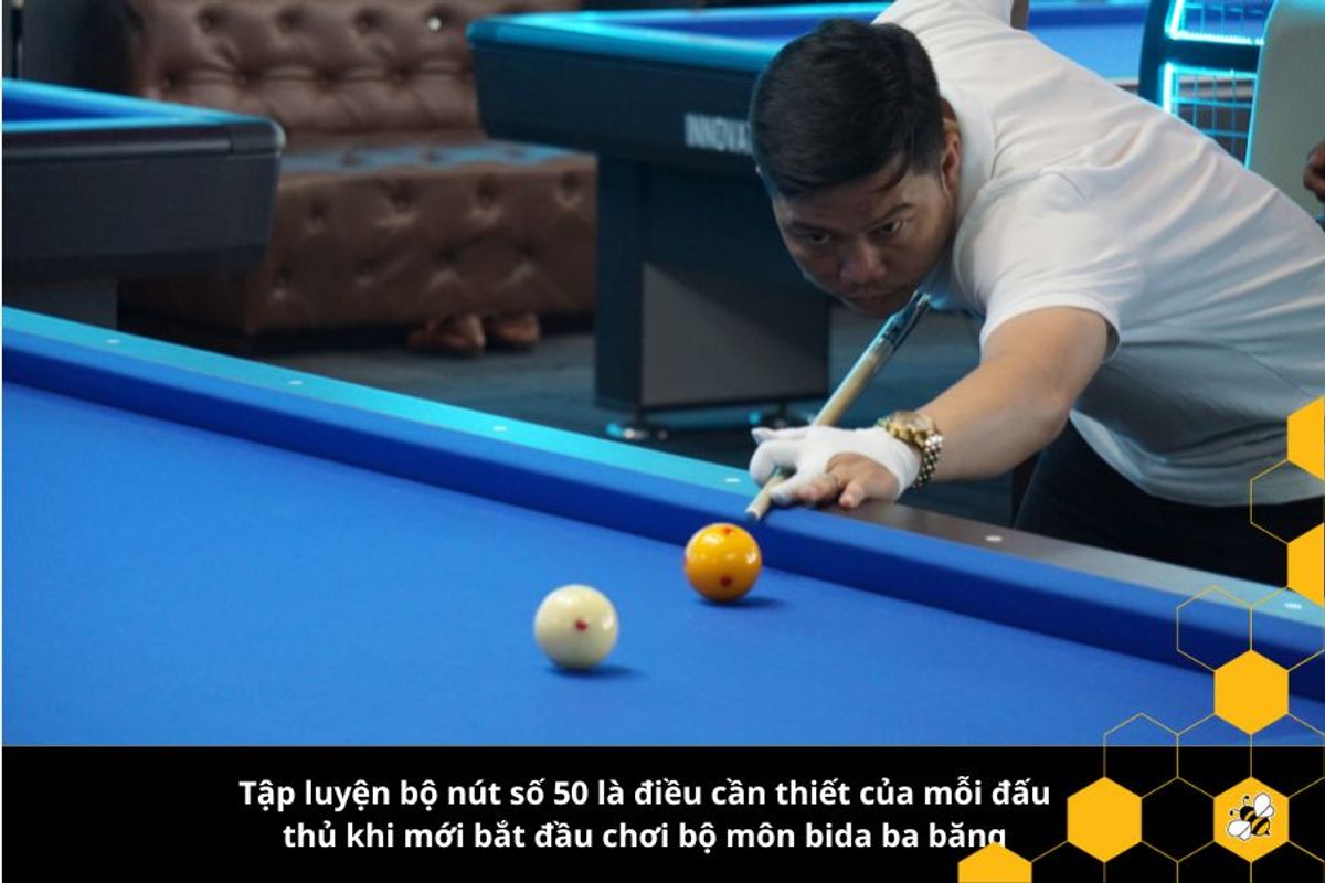 Tập luyện bộ nút số 50 là điều cần thiết của mỗi đấu thủ khi mới bắt đầu chơi bộ môn bida ba băng. Vì bài tập này sẽ giúp các đấu thủ có thể thực hiện chính xác mọi cú đánh kết hợp với cảm giác của mình.