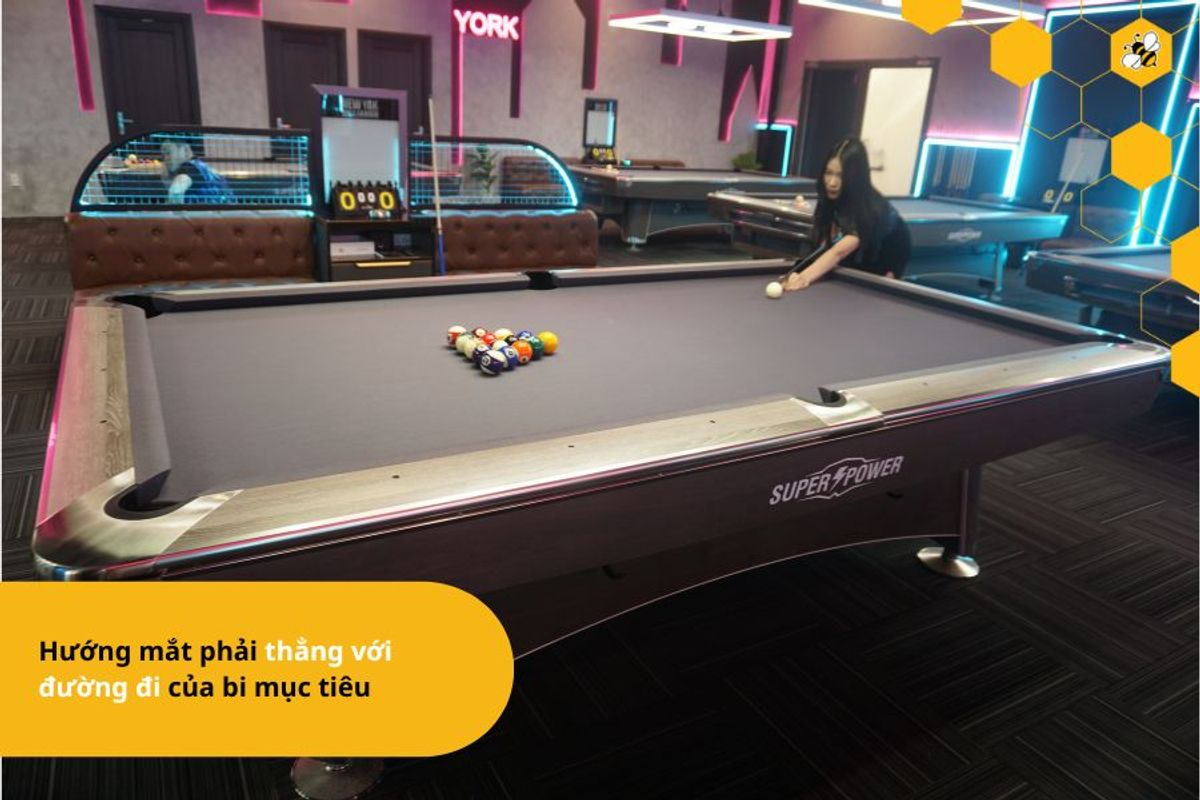 - Hướng mắt phải thẳng với đường đi của bi mục tiêu.
