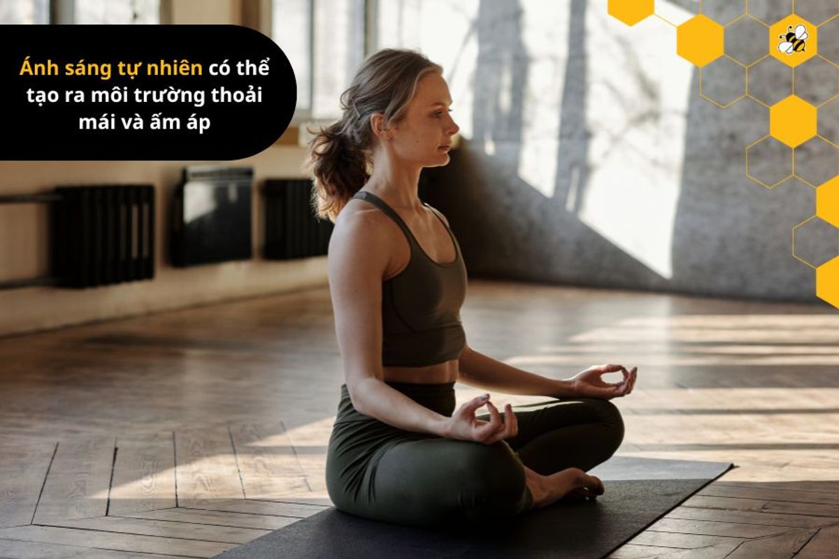 - Ánh sáng tự nhiên: Ánh sáng tự nhiên có thể tạo ra môi trường thoải mái và ấm áp. Hãy chọn một phòng tập có nhiều cửa sổ để tận dụng ánh sáng mặt trời vào ban ngày .
