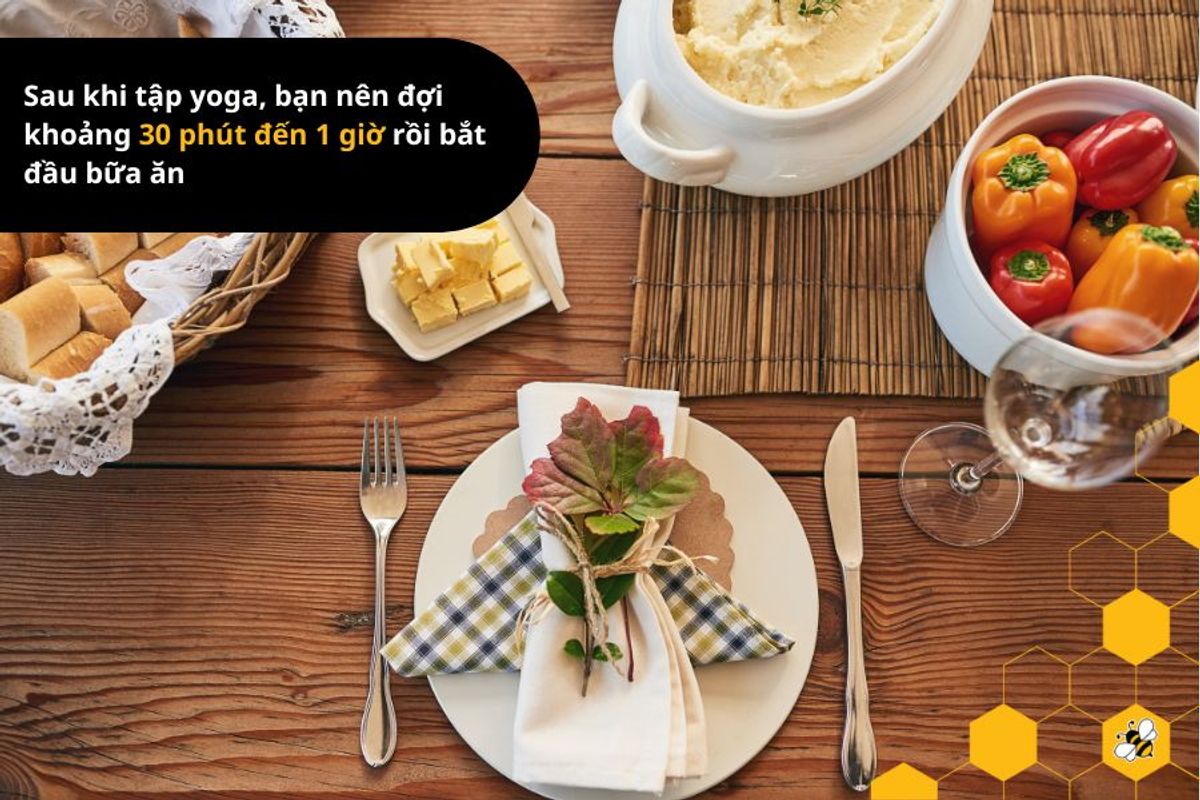 Sau khi tập yoga, bạn nên đợi khoảng 30 phút đến 1 giờ rồi bắt đầu bữa ăn để cơ thể có thời gian hồi phục và chuẩn bị cho quá trình tiêu hóa. Vì khi tập yoga, cơ thể bạn sử dụng năng lượng dự trữ và gây ra một số căng thẳng cho cơ bắp.
