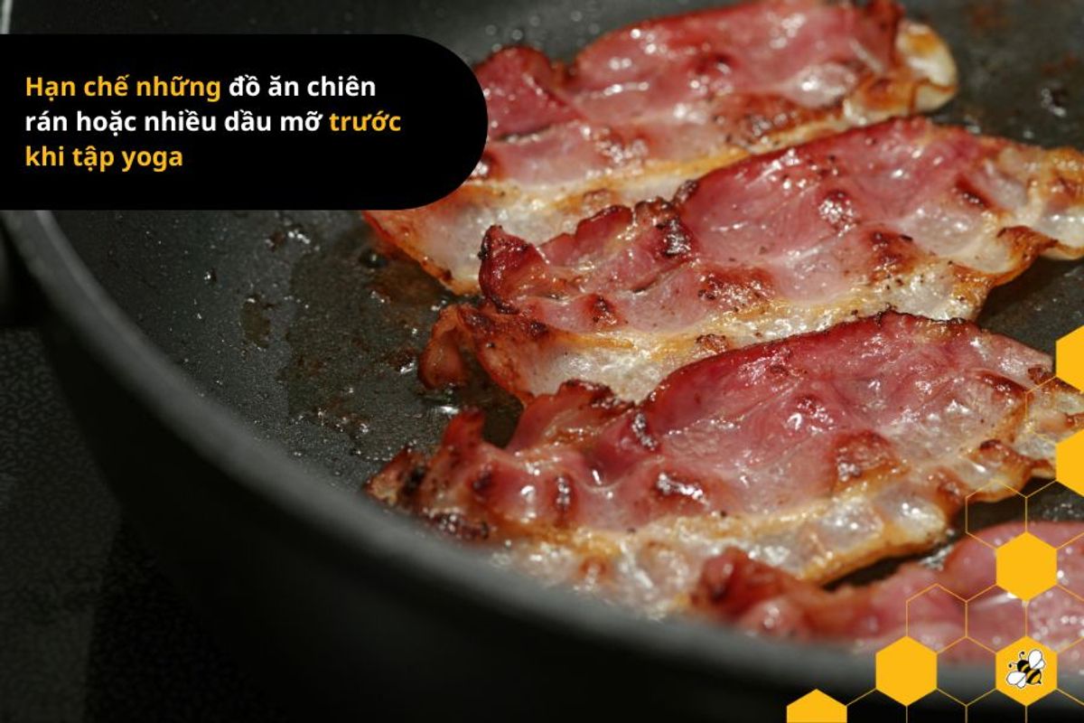 - Đồ ăn nhiều dầu mỡ: Trước khi tập yoga, người tập nên tránh những món ăn khiến cho cơ thể nặng nhọc. Vì vậy, nên hạn chế những đồ ăn chiên rán hoặc nhiều dầu mỡ như khoai tây chiên, đùi gà chiên, bánh mì kẹp thịt, ...;