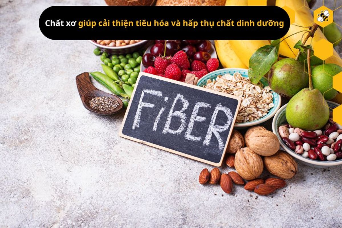 - Thức ăn giàu chất xơ: Chất xơ giúp cải thiện tiêu hóa và hấp thụ chất dinh dưỡng. Hãy ăn thêm nhiều rau xanh, hoa quả và các loại ngũ cốc nguyên hạt.