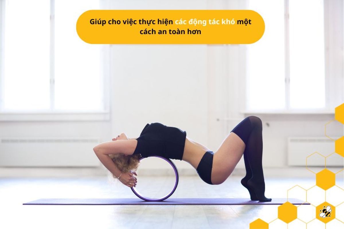 - Ngăn ngừa chấn thương: Vòng yoga giúp bạn đứng thẳng và mang lại cho bạn sự hỗ trợ mà các tư thế truyền thống không thể cung cấp cùng với các dụng cụ truyền thống hoặc thực hành mà không có dụng cụ.