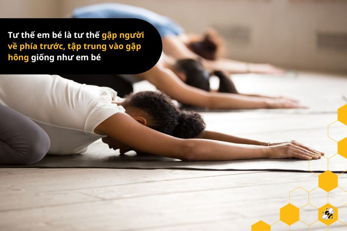 - Khái niệm: Tư thế em bé trong yoga là tư thế gập người về phía trước, tập trung vào gập hông giống như em bé.