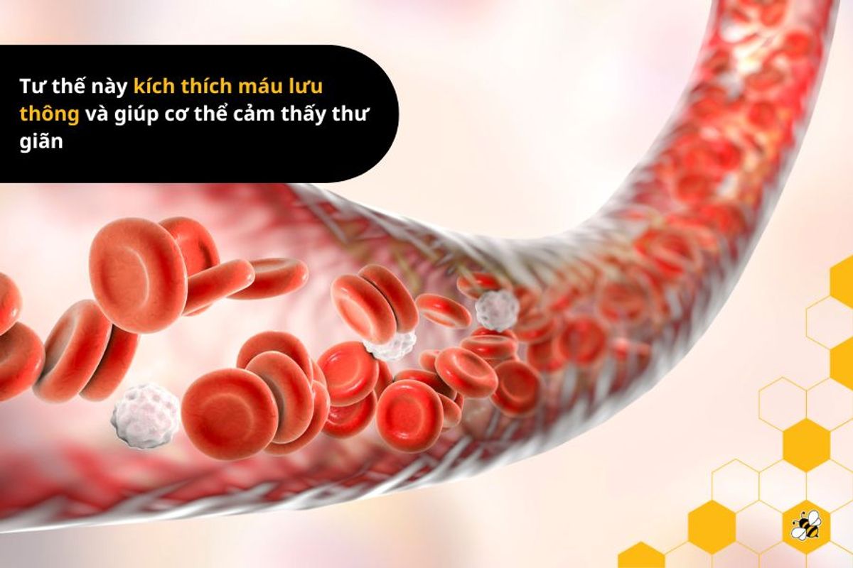 - Giúp máu lưu thông tốt hơn: Tư thế này kích thích máu lưu thông và giúp cơ thể cảm thấy thư giãn.