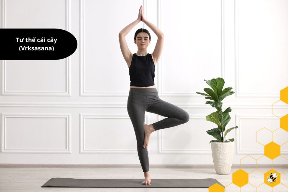 - Tư thế cái cây (Vrksasana): Đứng thẳng, đặt một chân lên đùi chân kia. Giữ thăng bằng và thở đều. Chuyển chân sau một thời gian.